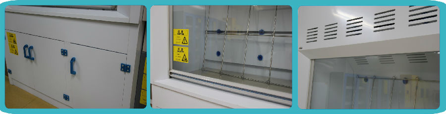 ②狭缝式通风柜:狭缝式通风柜是在其顶部和后侧设有排风狭缝,对各种不同工况都能获得良好的效果。但结构比较复杂,制作也较麻烦。
